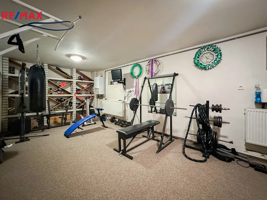 Suterén je koncipován jako relaxační zóna se saunou, ochlazovacím bazénkem a domácím fitness. K dispozici je také multifunkční pokoj vhodný jako hobby místnost, úložné prostory a kotelna.