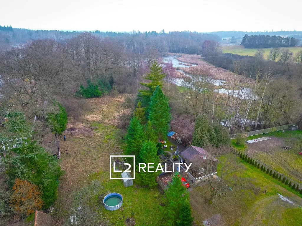 V přízemí jsou již vyměněna plastová okna s dvojsklem. Vytápění domu je zajištěno automatickými krbovými kamny na dřevěné pelety, ohřev teplé užitkové vody řeší elektrický bojler umístěný v koupelně. Nemovitost je napojena na elektrickou síť a rozvod vody z vlastní studny, kanalizace je svedena do septiku. Za domem je k dispozici i dřevěná kůlna včetně parkování pro osobní automobil. Za domem se nachází rozlehlá zahrada, která volně přechází do přilehlého lesa a hráze místního rybníka.