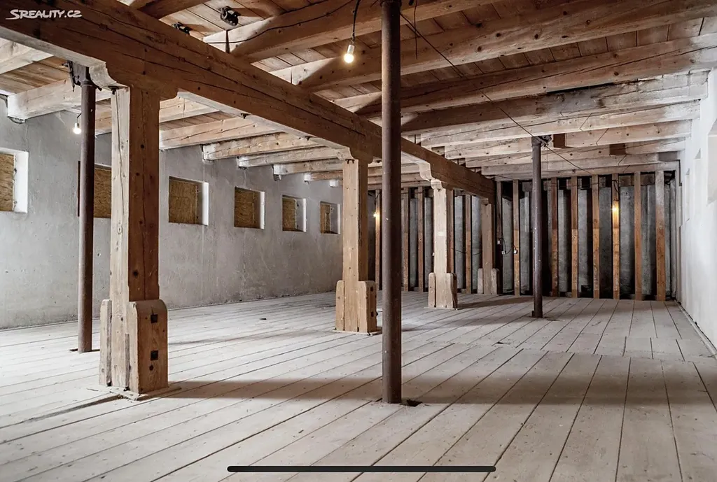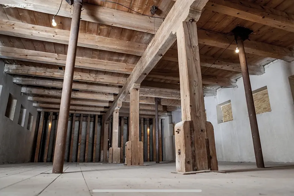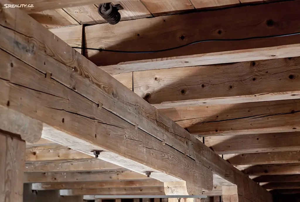 Zachovalé původní dřevěné trámy a další dřevěné prvky v perfektním stavu.