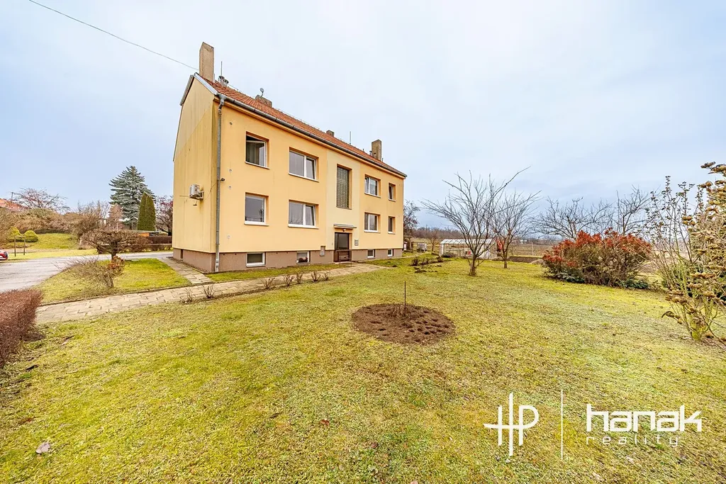 Předmětem prodeje je byt o užitné ploše 76 m² nacházející se ve 1.NP cihlového, samostatně stojícího, domu. V suterénu domu je prostorný sklep, který také patří k bytu. K tomu vlastní garáž 18 m² a vlastní pozemek za garáží 42 m² na kterém je zděný sklad. Zároveň k bytu náleží podíl na pozemku pod domem a velkém pozemku okolo domu 3527m². Díky tomu máte prostor pro vlastní zahrádku a na společném pozemku je i altán a gril pro společenská setkání.
