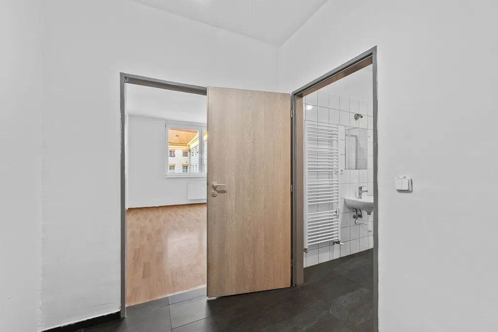 Nabízíme k dlouhodobému pronájmu pěkný byt 1+kk v ulici Fučíkova v Terezíně. Tento útulný byt se nachází ve 3. patře skeletové budovy po kompletní rekonstrukci. Disponuje obytným pokojem (spojeným s kuchyňským koutem, koupelnou s WC (cca 5m2) a předsíní. Byt se nachází ve velmi dobře zateplené budově s nízkými náklady na vytápění. Velkorysé, prostorné společné prostory domu poskytují komfortní bydlení. V areálu domu je možné si po dohodě pronajmout oplocené parkovací stání. V blízkosti se nachází veškerá občanská vybavenost, školy, školky a dostatek zeleně pro procházky. Tato nabídka je ideální pracující jednotlivce nebo pár hledající moderní a pohodlné bydlení v klidné lokalitě. Pejsek nebo kočička nejsou překážkou. Pro více informací a domluvení prohlídky nás kontaktujte. Jistota 24.000, převod elektřiny na nájemce.