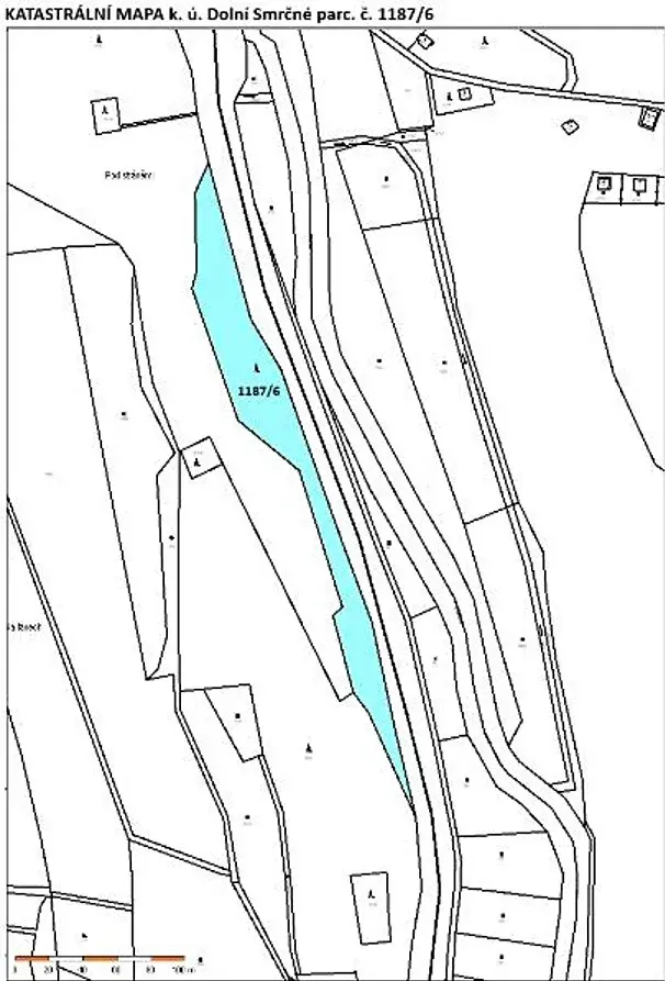 Jedná se o prodej lesního pozemku podlouhlého nepravidelného tvaru, který je značně sklonitý směrem k železniční trati. Původní lesní porost je vytěžený, pouze na ploše cca 400 m2 je provedeno nové zalesnění BK.
