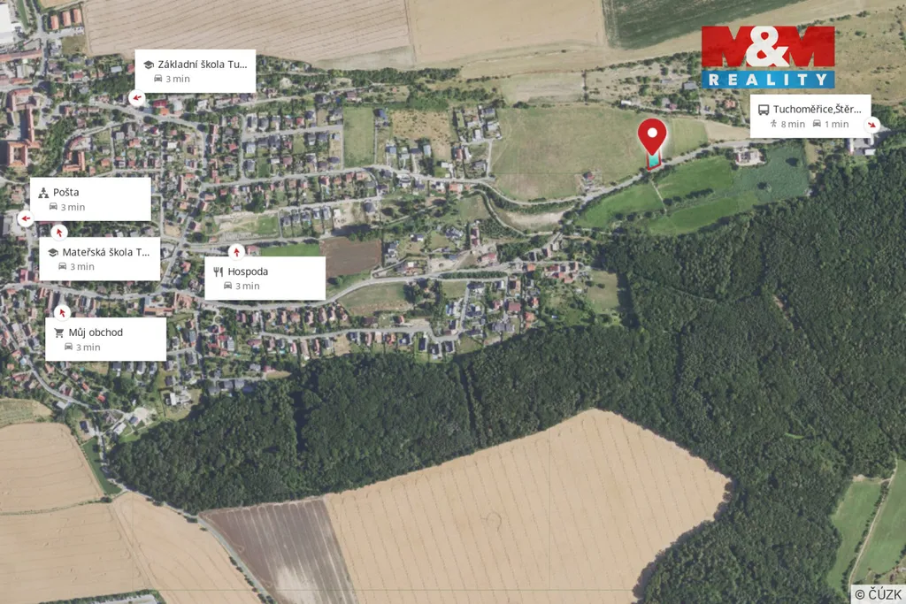 Tuchoměřice patří k nejžádanějším lokalitám u Prahy – jen několik minut od hlavního města, letiště Václava Havla a dálnice D7. Do centra se dostanete autem za 20–25 minut, k dispozici je i autobusové spojení na metro A a železniční zastávka.