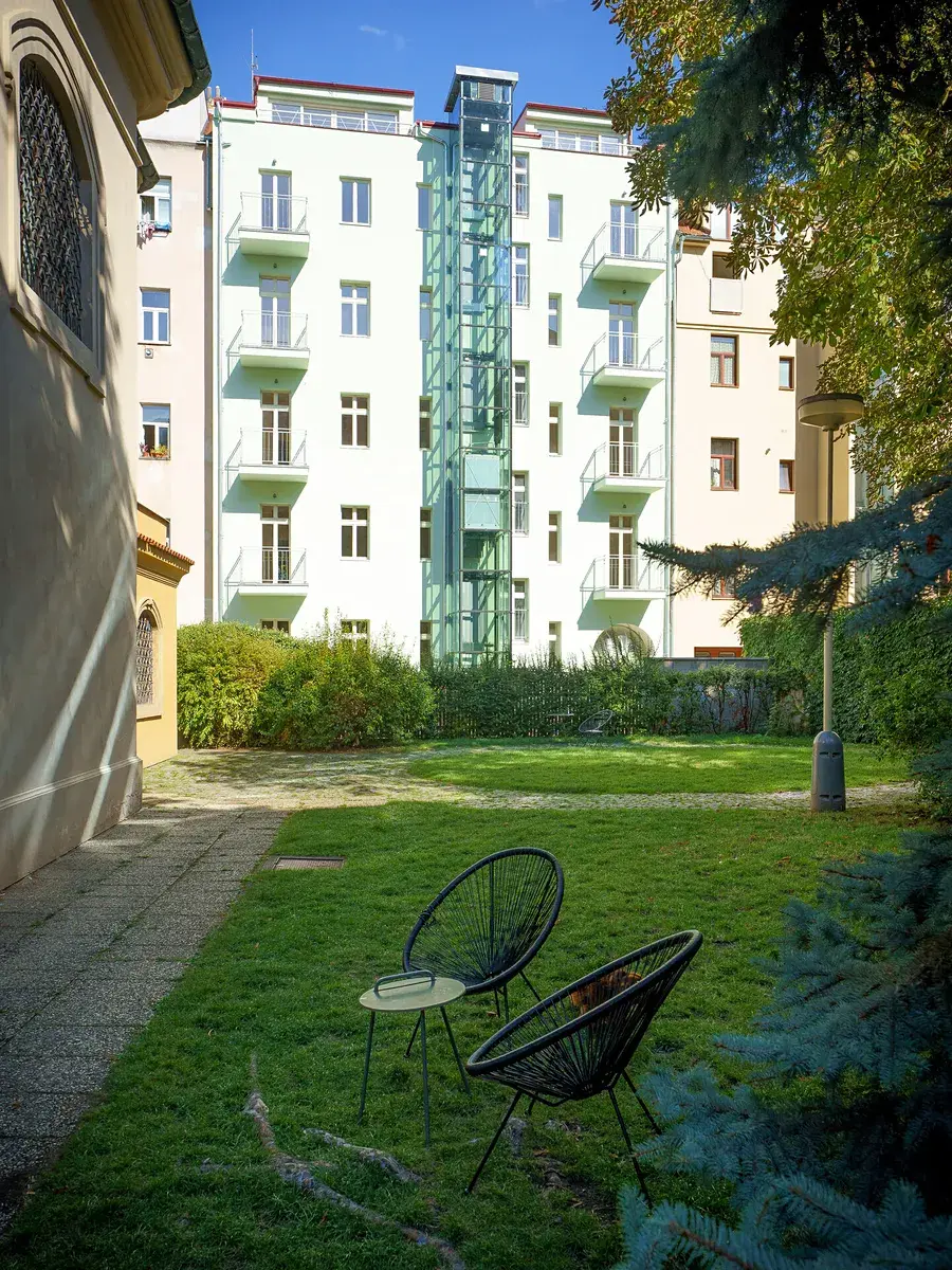 Společnost Stavba a design s.r.o. je zkušený stavitel půdních bytů a střešních nástaveb a realizoval stavbu při zachování původní architektury činžovního domu z počátku minulého století s prvky moderního designu ve vysokém standardu. Součástí rekonstrukce budovy jsou mimo jiné veškeré společné prostory, nový prosklený výtah, krásné schodiště. Každá bytová jednotka disponuje novými bezpečnostními a protipožárními dveřmi.