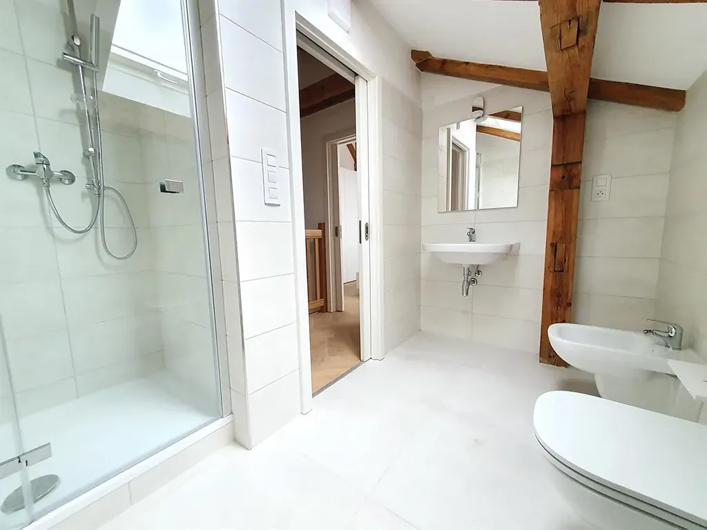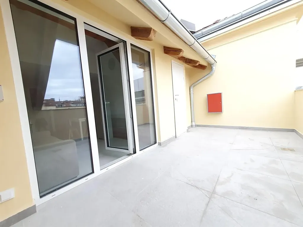 Pěkný kompletně zařízený nový mezonetový byt s terasou 2+kk 63 m2 se nachází v 5. patře hezkého udržovaného cihlového domu s výtahem. Všechna okna jsou orientována do klidného zeleného vnitrobloku.