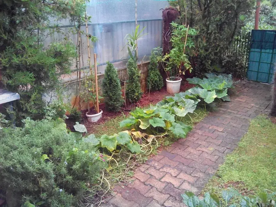 Na zahradě se nachází bojler a dřez.