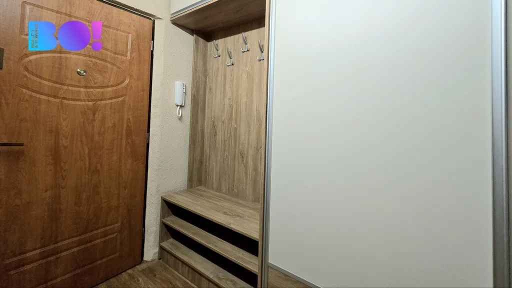 Byt je ihned k dispozici a nabízí velmi praktické dispoziční řešení. Najdete zde dva samostatné pokoje – světlý obývací pokoj a ložnici s vestavěnými skříněmi, dále kuchyni, koupelnu, samostatné WC a vstupní chodbu. Koupelna i toaleta prošly částečnými úpravami. Podlahy jsou řešeny kombinací parket a linolea, která nabízí praktické a osvědčené řešení.