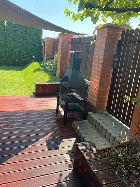 Do bytu se jde po schodech, které ústí na balkoně a odtud je vstup do bytu. Stejně je na druhé straně domu vyřešen vstup na zahradu. Zde je instalovaná markýza, která v případě potřeby příjemně stíní. Zahrada je přístupná také z ulice malou brankou.