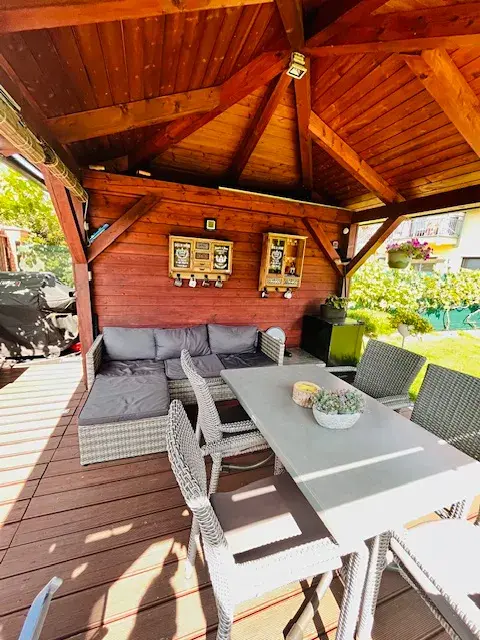 V rodinném domě, kde je provedeno Prohlášení vlastníka, jsou celkem tři byty. Nabízíme k prodeji jeden z nich, o velikosti 4 + 1, kde Podlahová plocha činí 131,37 m2. K celému domu patří i společná zahrada o rozměru 203 m 2, kde se nachází vybavený altán s posezením