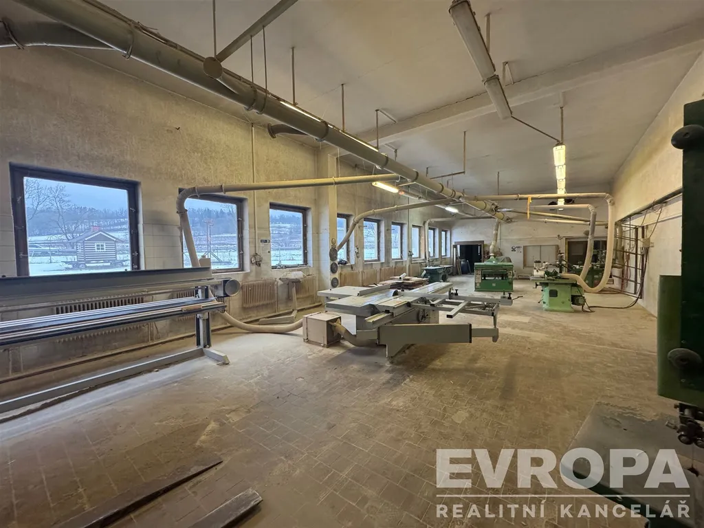 Výrobní haly a prostory jsou plně vybavené a připravené k okamžitému využití po dohodě je možné odkoupit i vybavení truhlárny, která zde 25 let fungovala