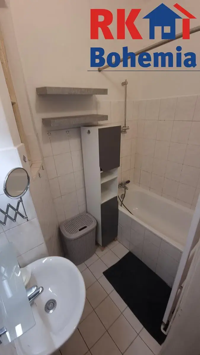 Tento velice hezký a světlý byt je dispozičně řešen jako 1+1. Kuchyň je vybavena kuchyňskou linkou, plynovým sporákem a el.troubou. Dále naleznete v kuchyni , jako součást vybavení i pračku a myčku. Celková podlahová plocha činí 14m2+samostatná spíž 1m2. Nájemce si musí zajistit svoji vlastní lednici.