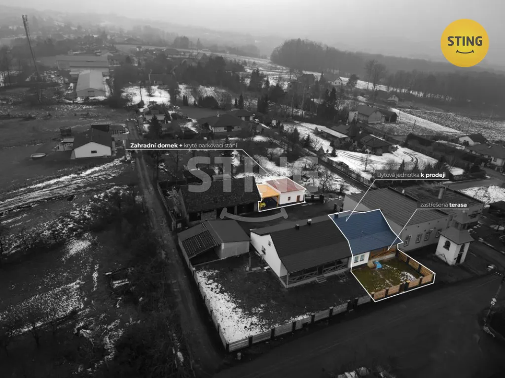 Prostorný byt 3+kk s parametry rodinného domu, dva vstupy, dvě zastřešené terasy, zahrada a parkovací stání – Dolní Žukov