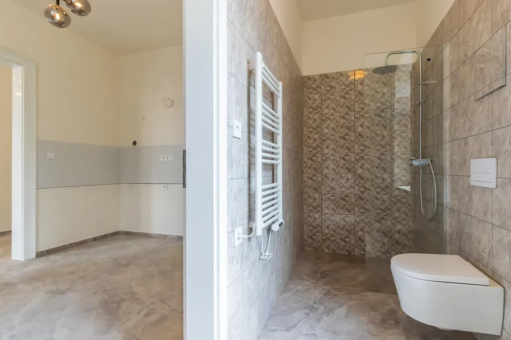 Byt prošel rozsáhlou a pečlivě provedenou rekonstrukcí, která klade důraz na moderní standardy a nadčasový design. Interiér je vyhotoven v čistých liniích a neutrálních tónech, které poskytují ideální základ pro budoucí zařízení podle Vašeho vkusu. V obytných místnostech byly zrenovovány kvalitní podlahy z dubového a bukového masivu, nové omítky a výmalby, a v celém bytě byly instalovány nové rozvody elektřiny, vody i topení. Komfortní vytápění zajišťují moderní vlastní plynový kotel, který kombinuje účinnost s nízkými provozními náklady.