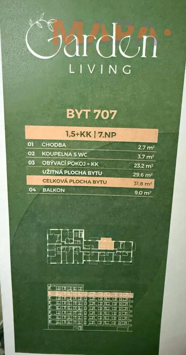 Prodej nového bytu , plocha 32 m + lodžie 9 m