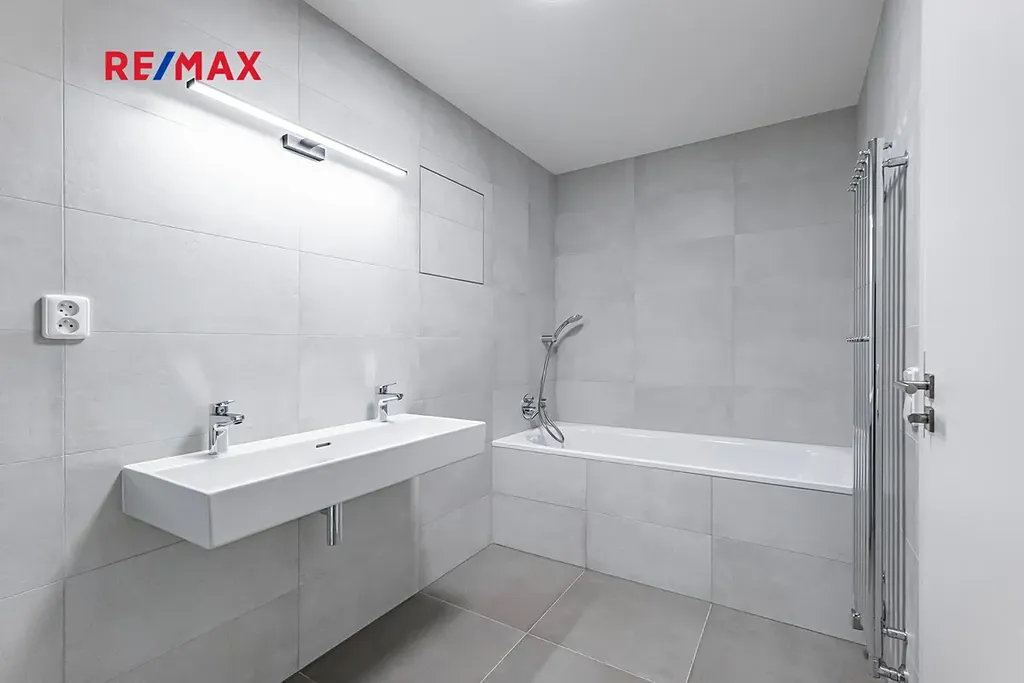 Nemovitost se nachází ve druhém patře objektu, který disponuje výtahem. Při vstupu do bytu se nacházíme v prostorné vstupní hale (9.06 m2). Z ní se dostaneme na toaletu (1.35 m2), nebo dále do obývací místnosti spojené s kuchyňským koutem (25.06 m2). Ten disponuje všemi potřebnými spotřebiči včetně oblíbené myčky a nelze opomenout ani lednici. Vše je zcela nové a Vy tak budete mít možnost započít novou kapitolu svého života jako úplně první nájemníci. Proto Vás jistě potěší i oddělená ložnice (16.84 m2), u které se nachází koupelna (6.3 m2). Ta je dostatečně veliká, aby se do ní vešla pračka a spolu s tím i sušička na prádlo. Dalšími přednostmi bytu, které rozhodně oceníte, jsou venkovní žaluzie, takže v případě touhy po větším soukromí stačí stisknout potřebné tlačítko. A vedle toho pak nelze opomenout ani instalovanou rekuperaci.