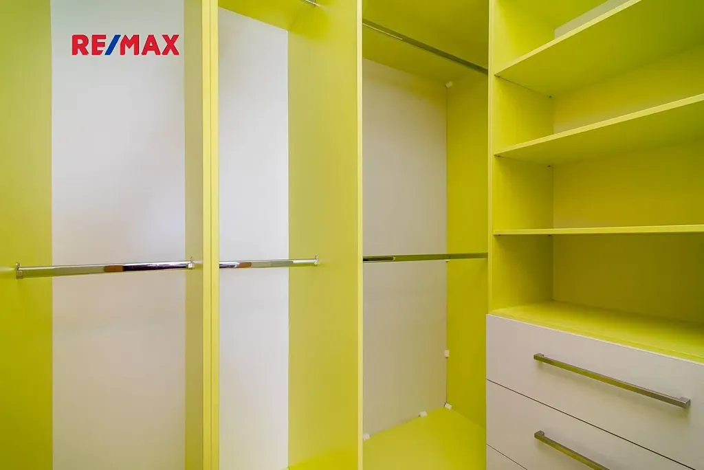 Byt je velice světlý a prostorný. Ze vstupní chodby je vstup do šatny (4, 5m2) s úložným systémem na míru, dále do samostatné komory a rozlehlé koupelny (5, 5 m2) s vanou a pračkou.