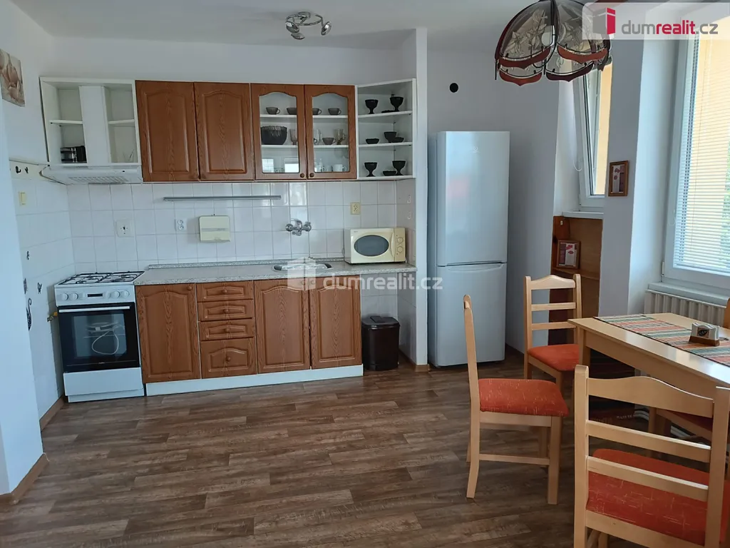 Byt je pronajímán vybavený : 2 x šatní skříň, postel, pohovka, televize, stolek + 3 židle, pračka, lednice s mrazákem, mikrovlnná trouba, rychlovarná konvice.