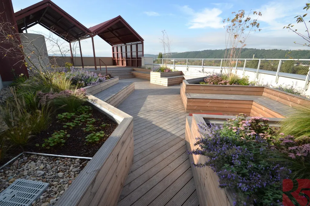 Možnost užívání společné střešní terasy či relaxační zóny v přilehlých zahradách.