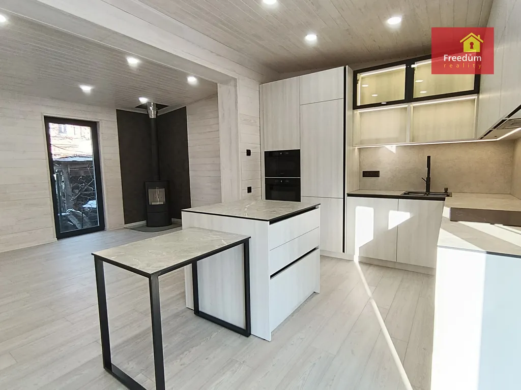 Hledáte pohodlné bydlení v nízkoenergetickém, ekologickém a útulném domě? Nový dům čeká na Vás. Prostorný, s dostatečným množstvím úložného prostoru. Dvě samostatné ložnice. Obývací pokoj s krbovými kamny. Plně vybavená vestavěnými spotřebiči kuchyňská linka. V domě je šatna, technická místnost, která může složit jako prádelna. V koupelně je sprchový kout, který je opatřen tvrzeným sklem odolným proti rozbití, keramické obklady a dlažba, závěsné WC.