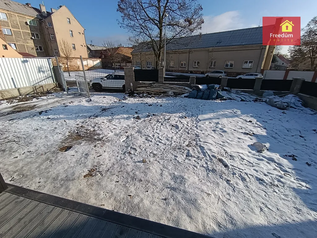 Zahrada je celá oplocená, posuvná brána na dálkové ovládání. Pozemek je rovný, při plánování se myslelo na parkovaní pro 2 auta. Možnost přístřešku. V létě je tu dostatek místa na bazén, dětský koutek, okrasné květiny nebo menší zahrádku se najde.