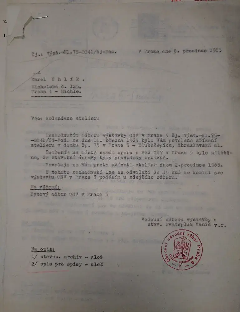 historií uměleckého ateliéru a pozdějším využitím jako autodílna se nachází v