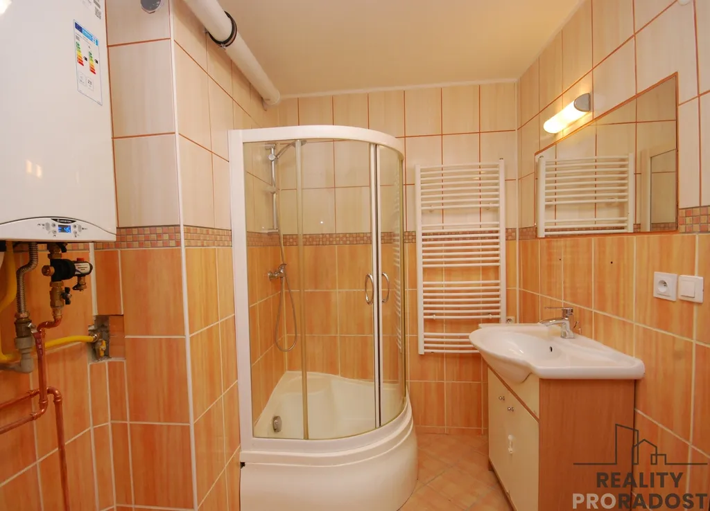 Na podlahách je praktické PVC, které je nenáročné na údržbu. O tepelný komfort i ohřev vody se stará nový plynový kotel, zajišťující efektivní a úsporný provoz.