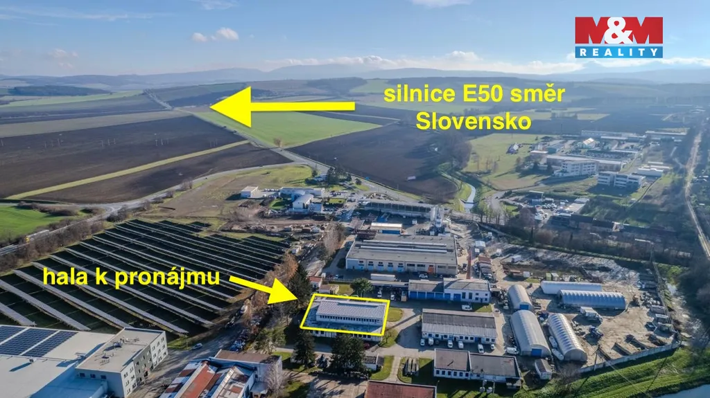 K pronájmu nabízíme výrobní halu o ploše 1.056 m² na okraji Uherského Brodu, přímo u silnice E50. Objekt je vhodný pro výrobu, skladování i jiné komerční využití. Disponuje dvěma vjezdy – východními vraty pro dodávky (výška 3,23 m) a západními vraty (výška 5 m), které umožňují pohodlný vjezd i kamionů. Uvnitř je instalován jeřáb s nosností 5 tun a podlaha s nosností 10 t/m², což splní i náročné provozní požadavky. Pro zaměstnance je připraveno zázemí s oddělenými šatnami, sprchami, WC, jídelnou s přípravnou a možností samostatných dílen či kanceláří. K hale náleží sedm parkovacích míst, další lze pronajmout dle potřeby. Objekt je napojen na obecní vodovod a kanalizaci s ČOV. V roce 2021 prošel rekonstrukcí – nové rozvody elektřiny, úsporné LED osvětlení, zateplená střecha, plastová okna a zateplená vrata. Moderní hala s výbornou dostupností je připravena k okamžitému využití. Pro více informací či sjednání prohlídky kontaktujte makléře.