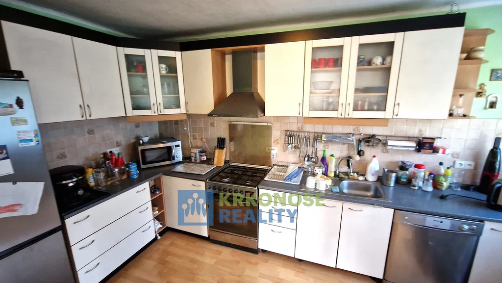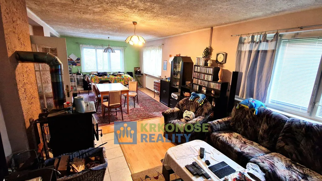 Nabízíme Prodej rodinného domu se zahradou, garáží a pergolou, v okrajové části obce Úpice, ulice Palackého. Objekt je zděný, s kamennou podezdívkou a břízolitovou fasádou. Ve větší části své zastavěné plochy je dům podsklepen. Dům je vytápěn plynovým kotlem ústředního topení. Je napojen na veřejný kanalizační a vodovodní řád + vlastní studna. Elektřina – 220/380V. Dispozice – v prvním podzemním podlaží domu se nachází bytová jednotka o velikosti 2+kk - chodba, koupelna (vana, sprchový kout, umývadlo), WC, obývací pokoj s kuchyňským koutem, ložnice, schodiště do druhého nadzemního podlaží, kde je bytová jednotka 3+1 – chodba s výstupem na venkovní nezastřešenou terasu, 2 pokoje, kuchyň, koupelna (rohová vana, umývadlo) s WC, komora. V 1. podzemním podlaží je chodba, prádelna, kotelna, sklep, spíž a garáž. K objektu dále přísluší samostatně stojící dřevěná pergola, jež však není se zemí pevně spojena základy, nepodléhá tedy zápisu do katastru nemovitostí. K domu přísluší okolní okrasná zahrada, která s domem a přilehlou vedlejší stavbou tvoří funkční celek.