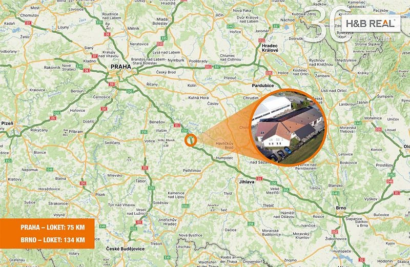 Prodej komerčního pozemku u D1, v těsné blízkosti sjezdu č. 66, obec Loket, okres Benešov.