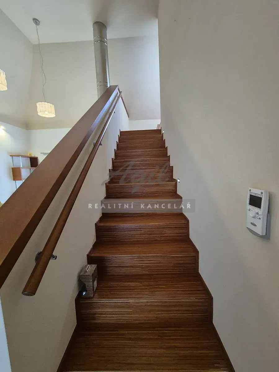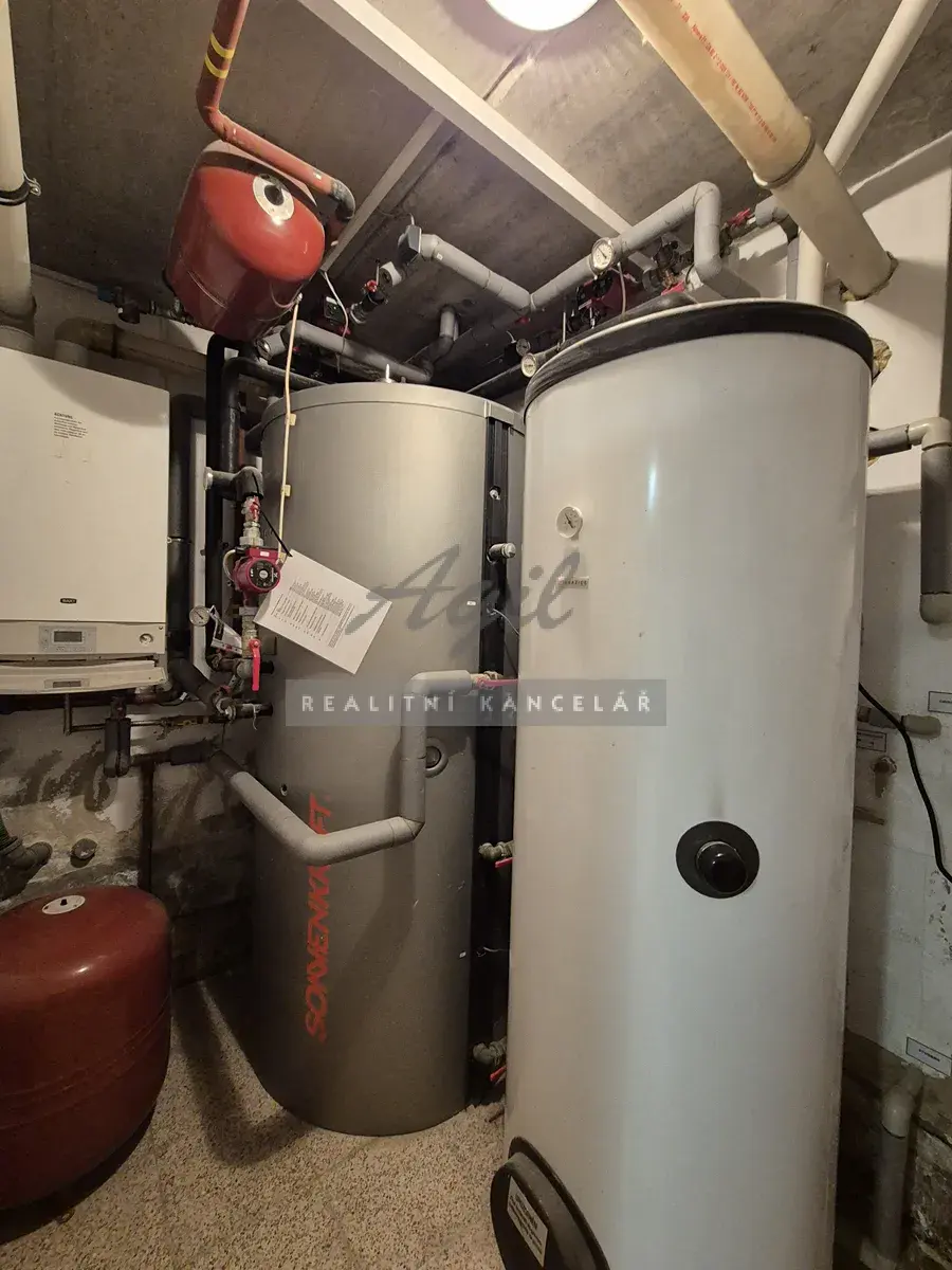 Garáž 26 m2, technická místnost 5 m2 s otopnou technologií, sklad 4 schodiště 4 m2.