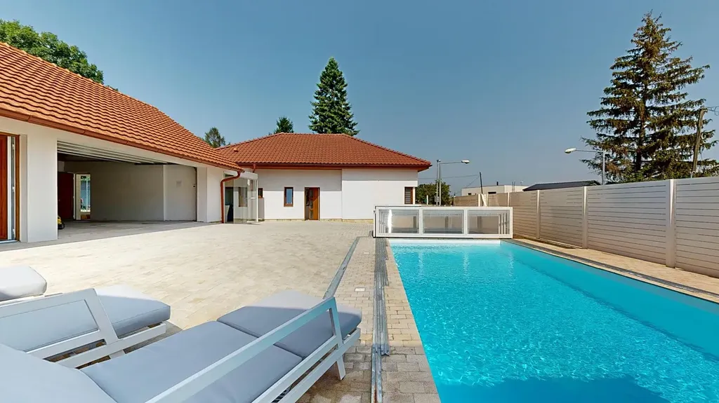 Tento nádherný rodinný dům o celkové podlahové ploše cca 182 m se nachází na prostorném pozemku o výměře 621 m, jenž poskytuje dostatek prostoru pro všechny Vaše potřeby. Pozemek za domem využívají současní majitelé ke grilování a zahradničení a v přední části se nachází krytý, vyhřívaný bazén se slanou vodou, kde si můžete užívat relaxace kdykoliv během roku.