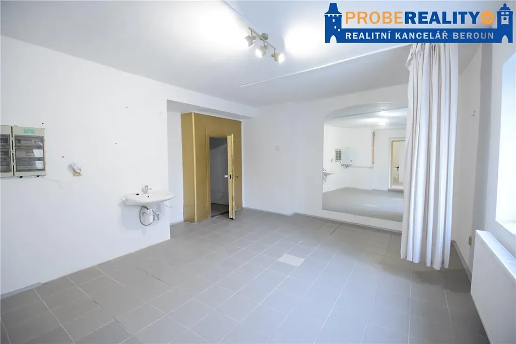 Nabízíme k pronájmu nebytové prostory o celkové výměře 93 m2, nacházející se ve zvýšeném přízemí měšťanského domu and #34;U Tří Korun and #34; - Beroun, se vstupem z Ulice Havlíčkova. Jedná se o prostory rozčleněné do tři místností a vlastním WC. Vhodné jako kanceláře, výrobní prostor, sklad nebo studio . Velice žádaná lokalita v centru města. Více info v RK.
