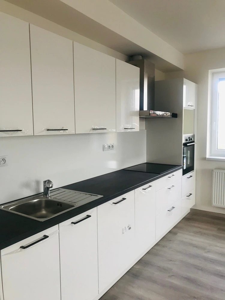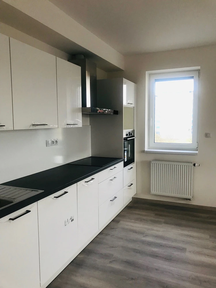 Byt je vybaven rovnou kuchyňskou linkou v moderním bílo šedém designu (součástí indukční varná deska, myčka 600 mm, led osvětlení, mikrovlnné trouba), kvalitními venkovními roletami ve všech pokojích, videotelefon. Vyšší standard - částečně vybaveno / možno dle dohody vybavení a zařízení bytu - sedací souprava, obývací stěna.