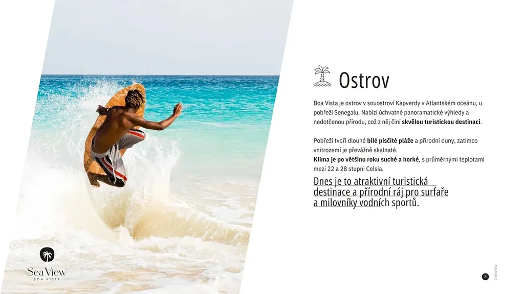 Boa Vista, nejvýchodnější z deseti ostrovů tvarovaných lávou starověkých sopek, v nekonečné rozlehlosti Atlantského oceánu.