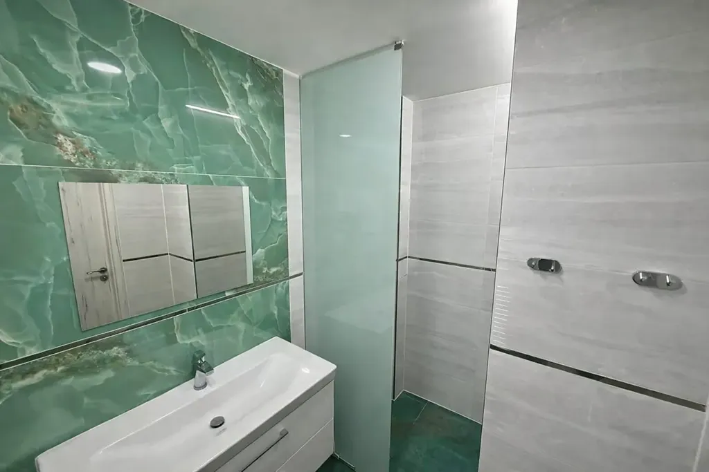 Interiér je čistý, moderní a plně zařízený – nábytek, pračka, myčka, pracovní stoly a kompletně vybavená kuchyň (příbory, nádobí, hrnce apod.). Stačí se jen nastěhovat s osobními věcmi.