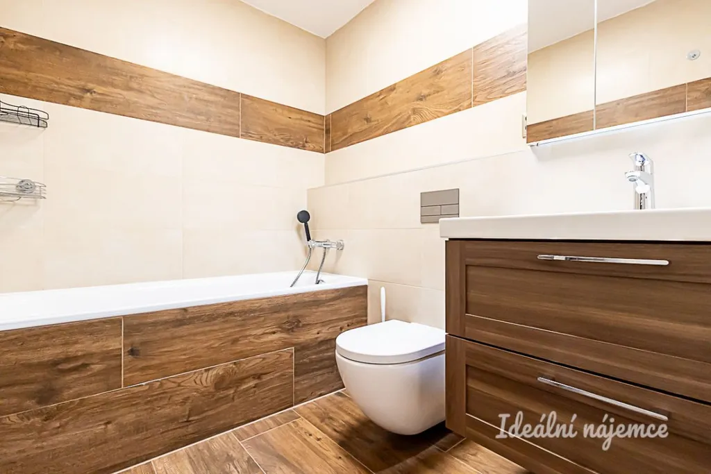 Interiér je nabízen jako nezařízený, což budoucím nájemníkům poskytuje ideální příležitost uzpůsobit si bydlení přesně podle vlastního vkusu a potřeb. Srdcem domova je velkorysý obývací pokoj s jídelním koutem, který je již vybaven sedací soupravou a konferenčním stolem. Na něj navazuje moderní kuchyňská linka se všemi spotřebiči včetně lednice s mrazákem, elektrické a mikrovlnné trouby, varné desky, digestoře a myčky. Dispozici doplňují další tři samostatné neprůchozí pokoje, které mohou sloužit jako ložnice, dětské pokoje nebo pracovna. Velkou výhodou jsou dvě koupelny – první je vybavena vanou, umyvadlem a toaletou, zatímco druhá disponuje sprchovým koutem, druhou toaletou a je v ní umístěna pračka i sušička. V předsíni je toaleta pro hosty.