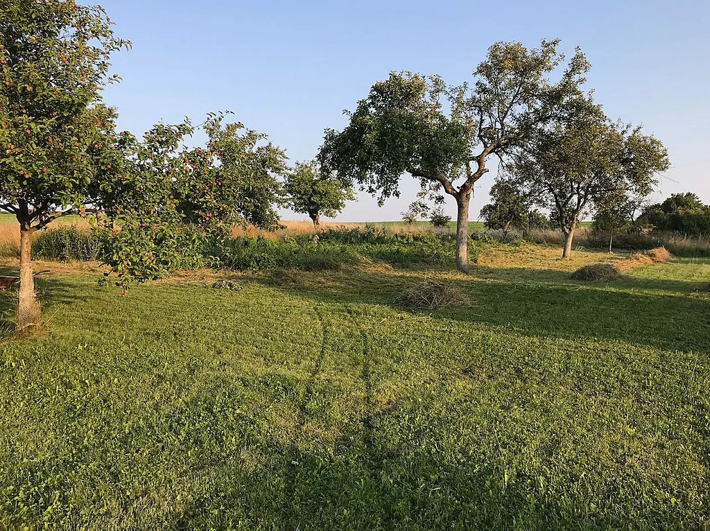Součástí nabídky je i rozsáhlý pozemek, který navazuje na stodolu a na kterém je ještě jedna stavba, původně sloužící jako přístřešek pro slepice a včelí úly s dalšími úložnými prostory pro zahradní vybavení. Zahrada je rovinatá se vzrostlými ovocnými stromy, převážně starými odrůdami jabloní, je zde ale i nádherná třešeň s výbornými velikými a sladkými plody.