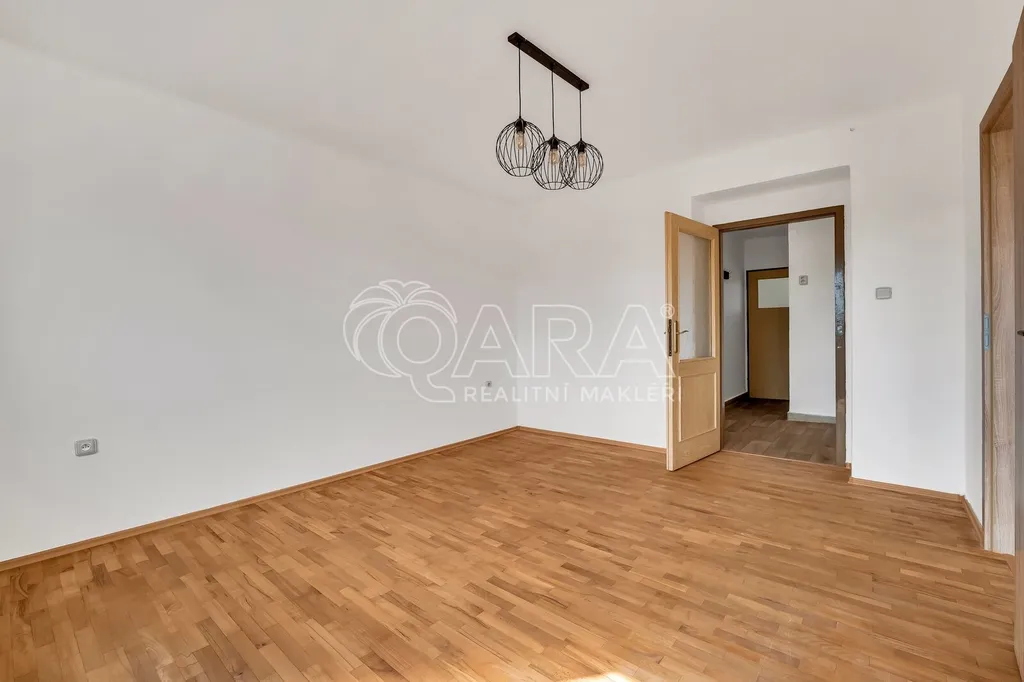 Byt je situován ve třetím nadzemním podlaží cihlového domu, má plastová okna a nabízí celkovou plochu více jak 53 m2. Už na první pohled působí tato jednotka velice vzdušným a světlým dojmem. Dispozici bytu sestává ze vstupní chodby, vkusně zrekonstruované koupelny se sprchovým koutem, toaletou a přípojkou na pračku. Dále kuchyně, která je vybavena horkovzdušnou troubou, elektrickým sporákem a digestoří. Ve vstupní chodbě a kuchyni byla použita PVC podlaha. Jeden z pokojů disponuje přímým vstupem na balkon a může tak skvěle posloužit jako obývací pokoj a dalším pokojem, který může plnit funkci ložnice, případně dětského pokoje. V pokojích byly citlivou formou renovovány původní parkety. O dostatek úložných prostor se stará praktická komora a k bytu dále náleží dvě sklepní kóje.