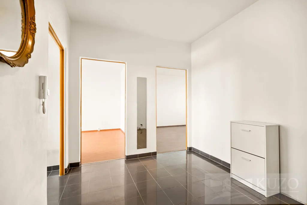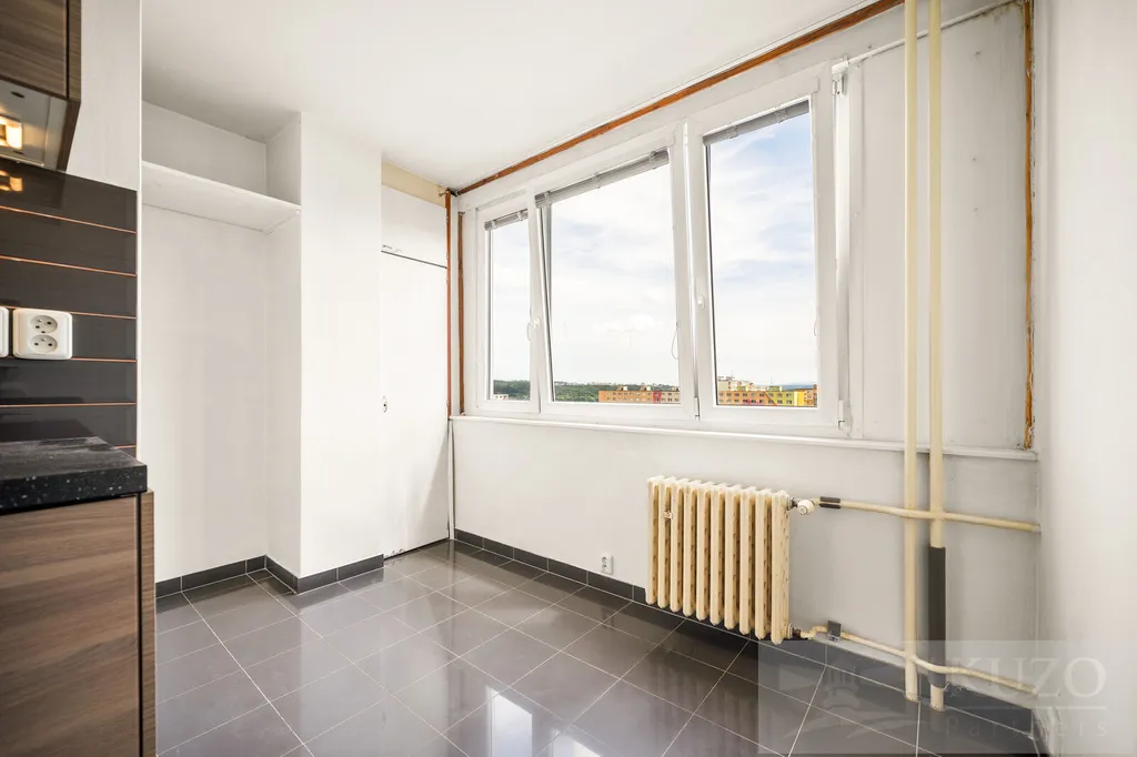 Byt disponuje prostornou vstupní předsíní, dvěma neprůchozími pokoji zajišťujícími dostatek soukromí a samostatnou kuchyní vybavenou plynovým sporákem a myčkou. Dále je zde koupelna a samostatné WC. Z ložnice je vstup na západně orientovanou lodžii s příjemným výhledem do okolí. Ostatní okna jsou orientována na východ, což zajišťuje dostatek denního světla po celý den.