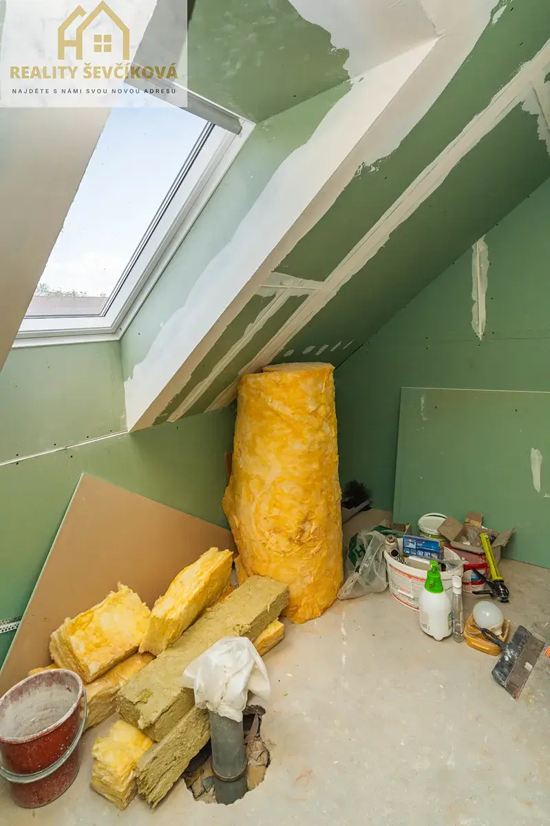 Interiér je kompletně zrekonstruován, výjimkou je koupelna v patře, připravená na dokončení podle představ nového majitele. Spodní koupelna je funkční a v dobrém stavu, přesto s ohledem na dnešní trendy lze do budoucna uvažovat o modernizaci.