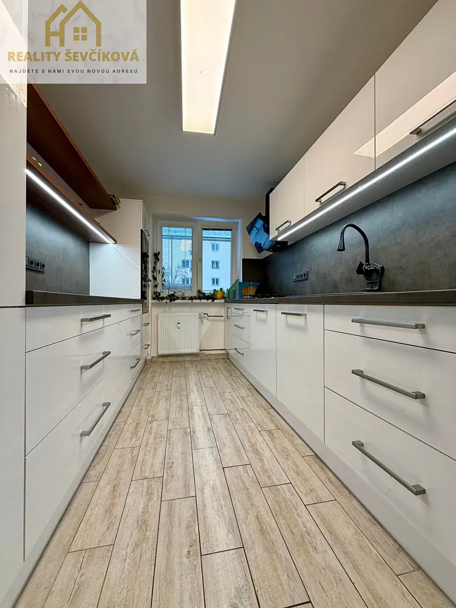 Nabízíme k pronájmu velmi pěkný byt o dispozici 2+1, umístěný v 1. NP cihlového domu v oblíbené lokalitě Pardubic – Zelené Předměstí, ulice Jiránkova. Bytová jednotka o výměře 63 m² je kompletně a moderně vybavená. K dispozici je kuchyňská linka se všemi spotřebiči (lednice, trouba, varná deska, mikrovlnná trouba, myčka a digestoř), dále jídelní stůl se židlemi, pohovka, pracovní stůl, komody a úložné prostory, manželská postel, šatní skříně a pračka. Součástí nabídky je také možnost odkupu televize.