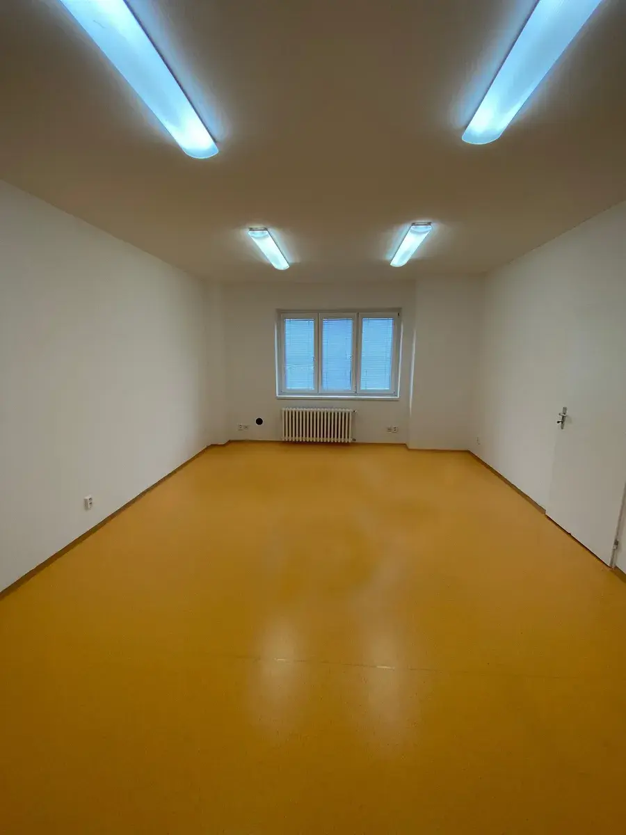 Cena: 255,-Kč/m2/měsíc, + 25,-Kč/m2/služby areálu/měsíc, + 95,-Kč/m2 paušální částka za využití společných prostor vč. energií, + elektřina v kanceláři dle spotřeby. Vytápění v ceně.