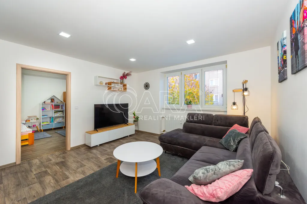 Byt se skládá z obývacího pokoje, ložnice, prostorné kuchyně, koupelny s WC a útulné předsíně. K bytu náleží dva sklepy, které poskytují dostatek úložného prostoru.