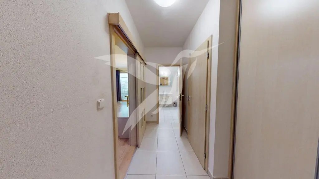 Bytová jednotka o velikosti 55 m2 se nachází ve 3. NP cihlového domu s výtahem a skládá se z předsíně, pokoje včetně kuchyňské linky s přístupem na balkon, samostatného pokoje, koupelny, toalety a k bytu náleží i sklepní kóje situovaná v suterénu bytového domu a venkovní parkovací stání přímo před vchodem do budovy. Nemovitost se pronajímá jako částečně zařízená a její součásti je kuchyňská linka s vestavěnými spotřebiči (kombinovaná chladnička, vestavěna trouba + varná deska a digestoř, MW trouba, myčka nádobí), dále jídelní set, manželská postel s rošty, vestavěné šatní skříně s velkým úložným prostorem, komody + stolek. V ceně nájmu je zahrnutý i internet, který je zaveden v bytové jednotce. Vytápění a ohřev vody je zajištěn dálkovými dodávkami.