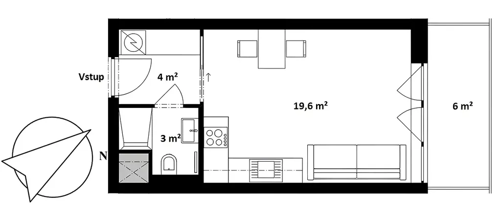 Světlý byt s orientaci na S/Z se skládá z: