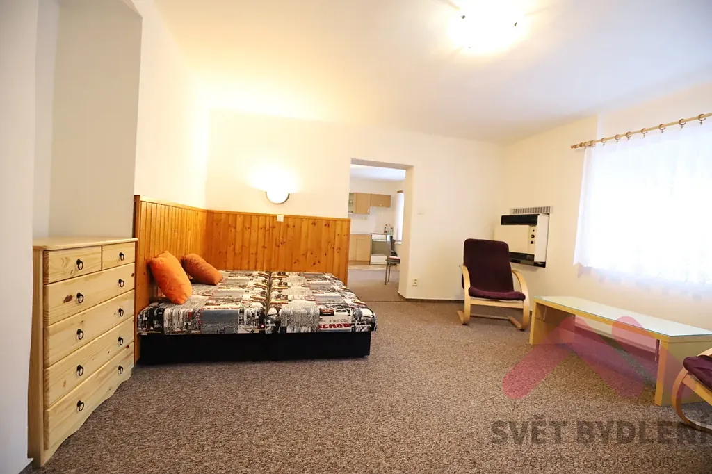 Nelze si přihlásit trv. pobyt /atelier. Zahrada kolem domu není k užívání! Vytápění zajišťuje plynové topení waw. Ohřev vody el. bojler. Ideální pro jednotlivce nebo pár.