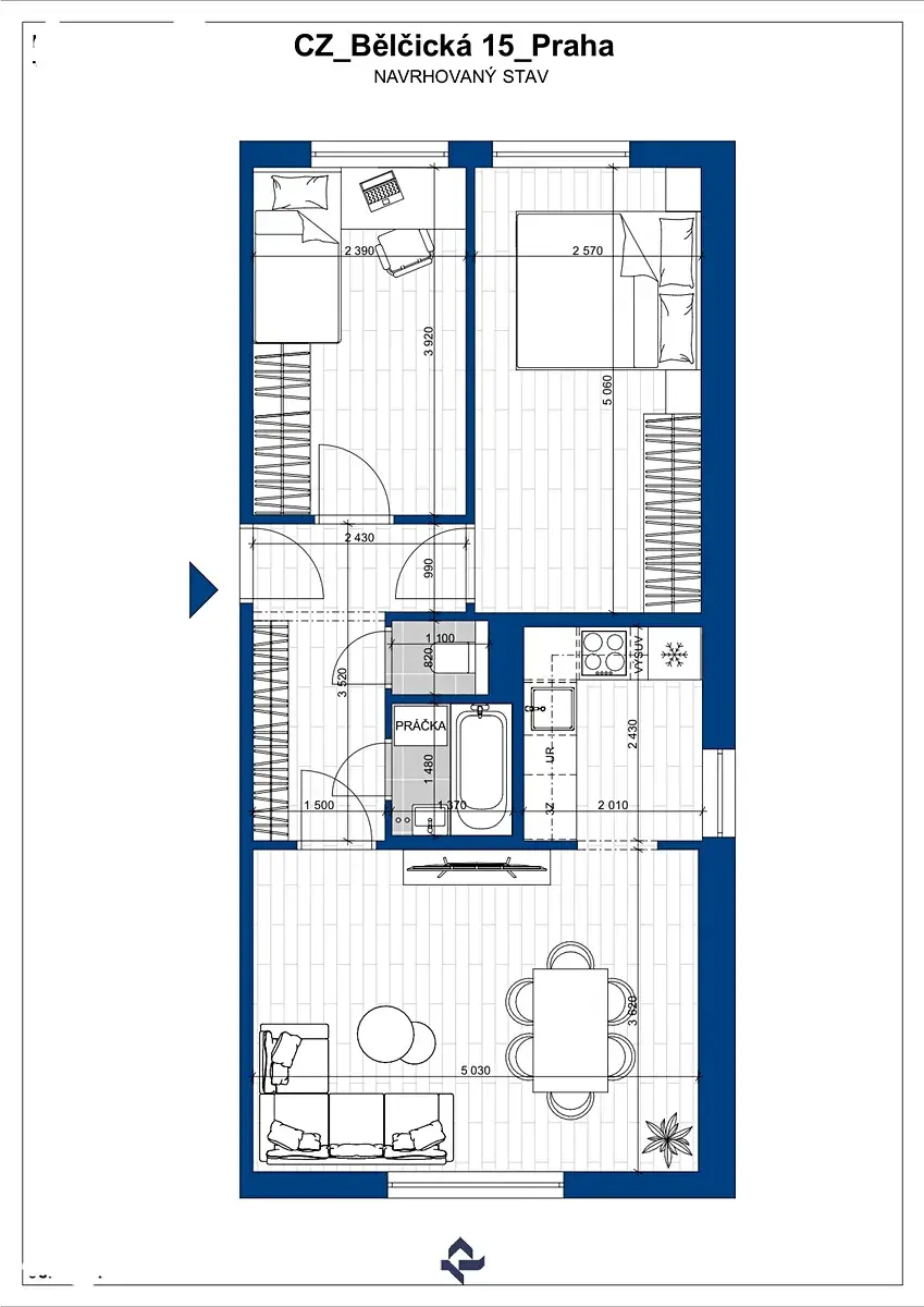 Nabízíme nový designový byt 3+kk po kompletní rekonstrukci v ulici Bělčická, Praha 4 - Záběhlice. Byt o ploše 56,7 m² je po rekonstrukci (dokončeno 01/2026).