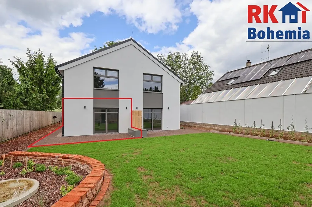 Na částečně oploceném pozemku se nachází zahradní domek vhodný k uskladnění kol (společně pro 3 byty), okrasná a užitková zahrádka, studna, terasa a venkovní parkovací stání. K bytu je možné využívat část zahrady, která navazuje na terasu.