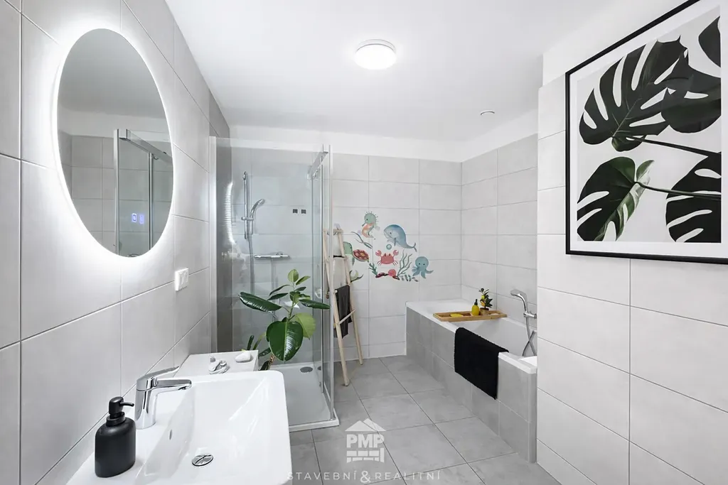Ve všech místnostech bytu se nachází podlahové vytápění s centrálním termostatem, které zajišťuje komfortní a rovnoměrné teplo. K vybavení bytu patří také centrálně řízená rekuperace vzduchu se stabilně nastavenou teplotou 21 °C. Vzduch v bytě proudí nepřetržitě, je přiváděn přes filtry zachycující nečistoty a současně je odváděn vzduch z místností spolu s vlhkostí, čímž je výrazně omezena tvorba plísní a zajištěno zdravé vnitřní prostředí.