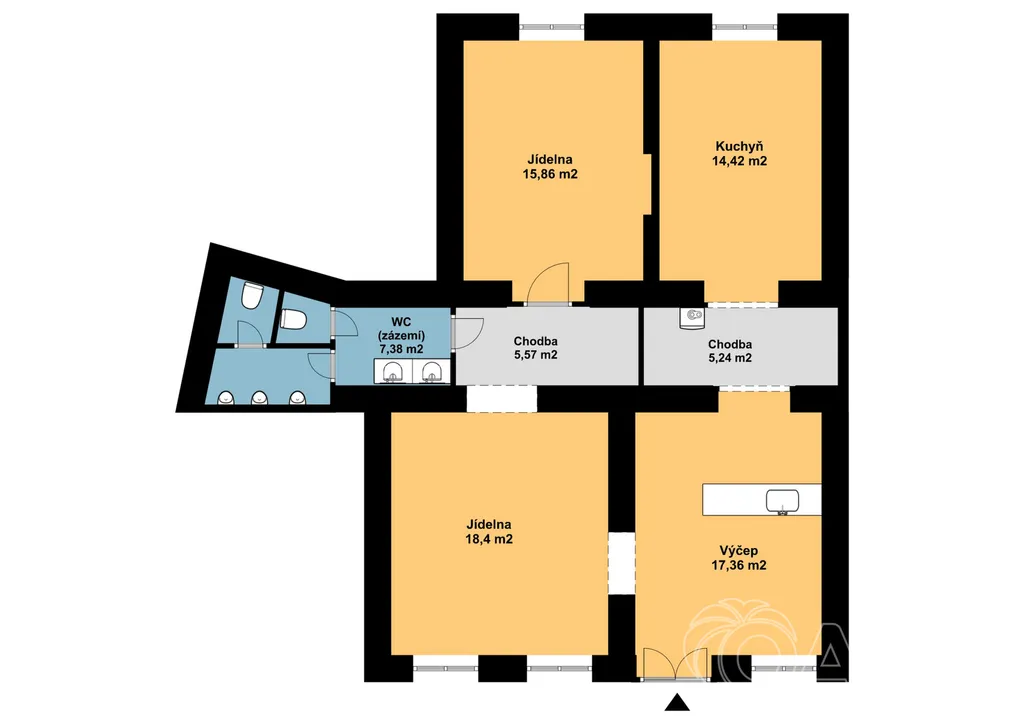 Prostor je připraven i na vybudování kuchyně, což umožňuje široké spektrum gastronomického využití.